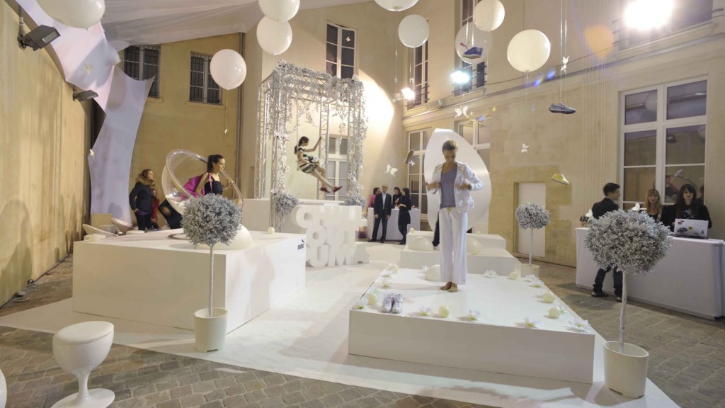 Pour le lancement d’une nouvelle collection PUMA, la société Thomas Marko a mis en valeur la collection vêtements et chaussures dans les différents espaces de la cour du Marais au 81 rue des Archives à Paris.